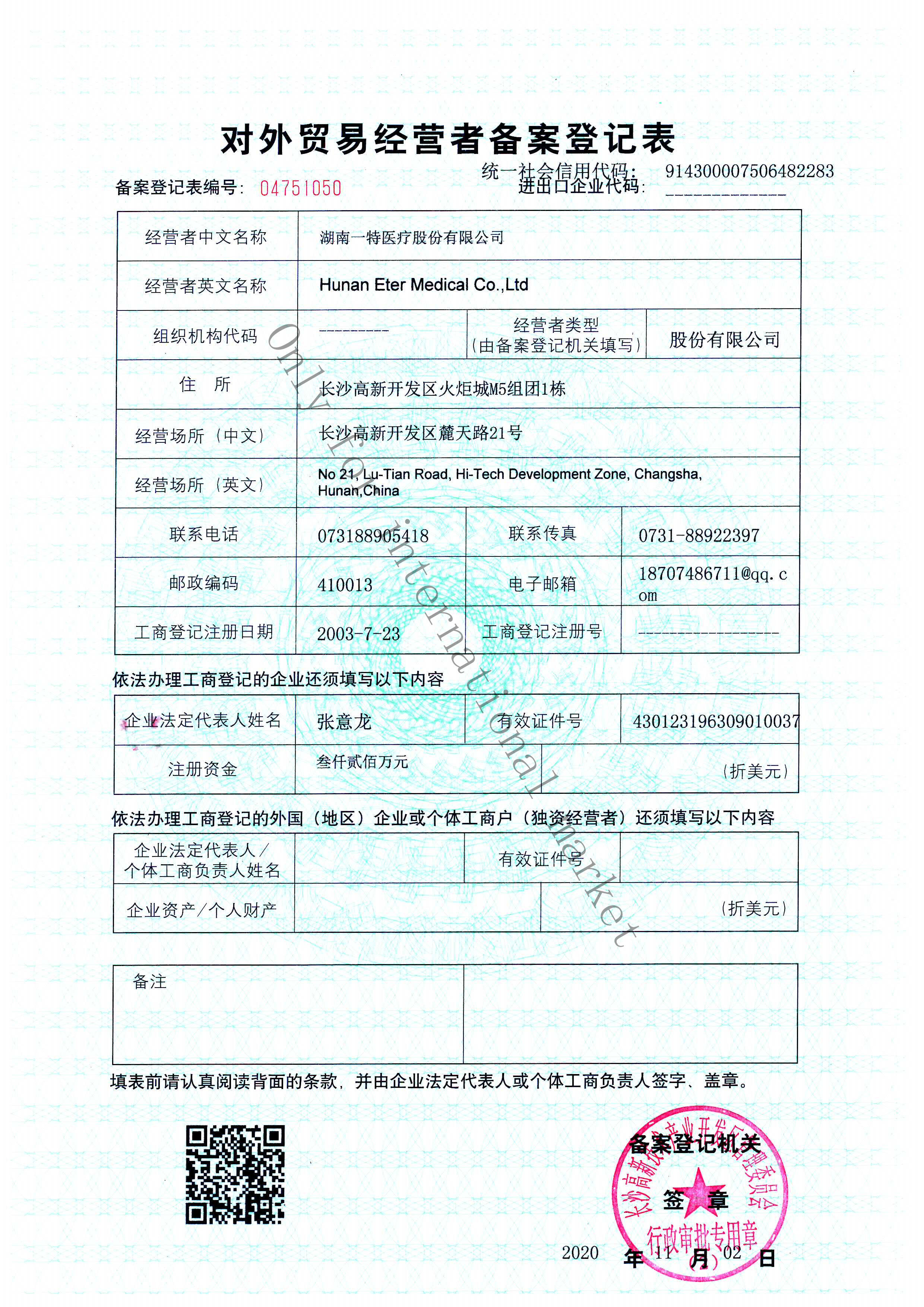 Hunan Eter Medical Co., Ltd was established in 2003 and listed on the NEEQ (National Equities Exchange and Quotations) with the stock code of 839074 in 2016.ETR has become the national high-tech enterprise and software enterprise and UN qualified products supplier.